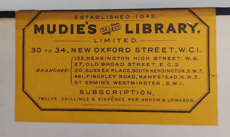 This copy carries distinguished provenance from Mudie’s Select Library, London’s most influential subscription library of the 19th and early 20th centuries — a notable association for collectors of Churchill and British political history.